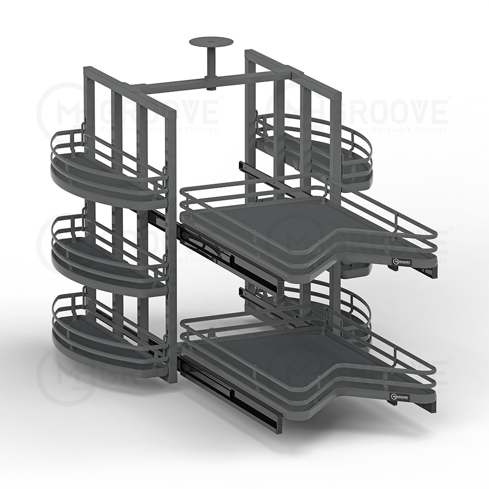 Make full use of corner space with interlock design to pull all baskets out and rotate the mechanism in the cabinet obtaining great convenient in storage of infrequently use items as small household appliances, plates & bowls, dried fruits or spices.