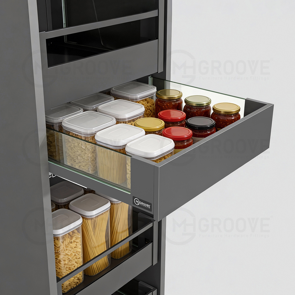 KITCHEN DRAWER SYSTEM, PUSH TO OPEN INNER SLIM BOX FRONT GLASS