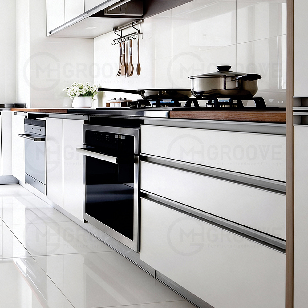 • Enhance the kitchen design with a seamless handle profile
