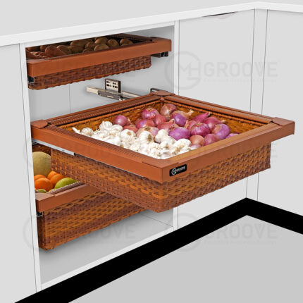 Ideal for sorting fruits and vegetable in an organized manner, these baskets are made of original Cane wood that are stable and suitable for all seasons. These baskets are elegantly designed for modular kitchens.
